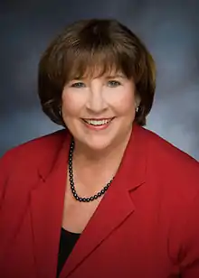 Hooley became interested in politics after her son was injured on a playground in West Linn.[2] She was appointed to a parks advisory committee, and in 1976, became the first woman elected to serve on the West Linn City Council.[1] In 1980, Hooley was elected to the Oregon State Legislature and served as a State Representative until 1987. In the legislature she served in the lower chamber (Oregon House of Representatives) as a Democrat representing Clackamas County (District 27), succeeding Republican Ted Achilles.[4][5] She chaired the environmental and energy committees, helping to pass energy conservation and recycling legislation and worked on rewriting land use planning laws. In her third term, she chaired the education subcommittee of the ways and means committee.[1] As subcommittee chair, she is credited with leading reforms to Oregon's public kindergarten, pay equity laws, and welfare system.[6] Hooley left the legislature in 1987 to accept a position on the Clackamas County Board of Commissioners.[2]