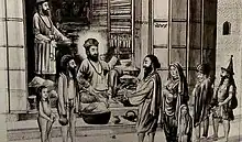 Guru Nanak in service at Daulat Khan Lodhi's stores, by Lahora Singh Mussawar, ca.1900