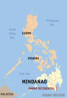![]() Map of the Philippines showing the location of Davao Occidental | |