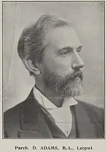 David Adams (18451922) of Cardiganshire, Wales was a Congregationalist minister and schoolmaster. He promoted temperance, and stressed the ethical rather than the controversial aspects of Christianity. His published works include Paul yng Ngoleuni'r Iesu (1897) and Yr Eglwys a Gwareiddiad Diweddar (1914).
