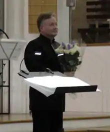 David Hill, MBE (born on 13 May 1957[1] in Carlisle, Cumberland) is a choral conductor and organist. Since July 2013, he is Professor Adjunct of Choral Conducting and Principal Conductor of Yale Schola Cantorum at the Yale Institute of Sacred Music.[2] His highest-profile roles are as Chief Conductor of the BBC Singers from September 2007 until 2017, and Musical Director of The Bach Choir since April 1998.[3]