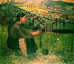 Davit' Kakabadze (Georgian: დავით კაკაბაძე) (20 August 1889 – 10 May 1952) was a leading Georgian avant-garde painter, graphic artist and scenic designer. A multi-talent, he was also an art scholar and innovator in the field of cinematography as well as an amateur photographer. Kakabadze's works are notable for combining innovative interpretation of European "Leftist" art with Georgian national traditions, on which he was an expert.