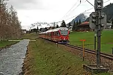 The Davos Platz–Filisur railway is a Swiss metre-gauge railway, which is operated by the Rhaetian Railway (Rhätischen Bahn; RhB) and has connected the spa town of Davos with Filisur on the Albula Railway since 1909. It represents a continuation of the Landquart–Davos Platz railway. The line is consistently single-track, apart from the stations, and has been electrified since 1919.