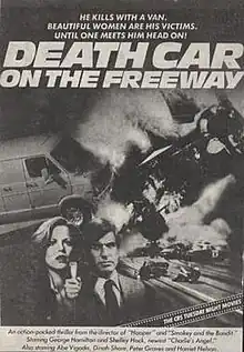 Death Car on the Freeway is a 1979 American made-for-television crime thriller film starring Shelley Hack. In a plot similar to Steven Spielberg's Duel, this tells the story of an unseen driver who is dubbed "The Freeway Fiddler".