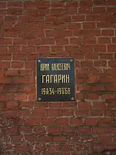 Plaque marking Gagarin's interment in the Kremlin Wall in Moscow