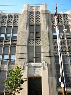 Delaplaine McDaniel School is a historic K-8 school located in the Point Breeze neighborhood of Philadelphia, Pennsylvania. It is part of the School District of Philadelphia. The building was designed by Irwin T. Catharine and built in 1935–1937. It is a three-story, 16 bay, yellow brick building in the Art Deco-style. It features three zigzag brick and limestone panels, brick pilasters with stepped capitals, and entrances with limestone pilasters.[2] The school was named for the Philadelphia Quaker iron ore manufacturer and merchant Delaplaine McDaniel (1817–1885), who left funds for the establishment of the school.
