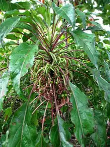 Delissea kauaiensis is a critically endangered species of the bellflower family. It is found on Mt. Ha'upu near Hanapepe Falls, and Mahanaloa. It was thought to be extinct, but 10 individuals were found in 2016.[1] It is known as ‘Oha in Hawaiian, and has the English common names of Kauaʻi delissea, KauaʻI leechleaf delissea, and Leechleaf delissea.[3]