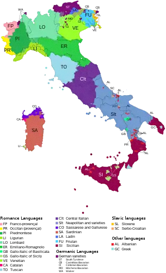 97. Martin Maiden, M. Mair Parry (1997), The Dialects of Italy, Psychology Press, p. 2