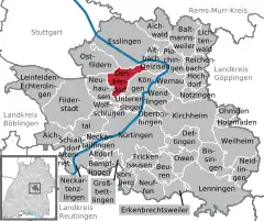 Adjacent municipalities are Esslingen am Neckar in the north, Deizisau in the northeast, Köngen in the east Unterensingen in the south, Neuhausen auf den Fildern in the west and Ostfildern in the northwest (all Esslingen district).