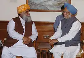 ![]() ![]() ![]() ![]() ![]() ![]() From top left to right: Islamic flag, Mahmud Hasan Deobandi, Hussain Ahmed Madani, Sabbir Ahmad Usmani, Sami-ul-Haq, Fazal-ur-Rehman (left) with Prime minister of India | |