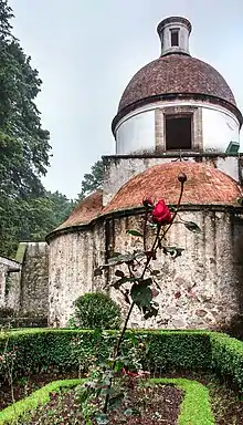 Desierto de los Leones (Desert of the Lions) National Park is located entirely within the limits of the Federal District; it stretches between Cuajimalpa and Álvaro Obregón boroughs.[1] It is located in the Sierra de las Cruces mountain range west of the city center with an area of 1,867 hectares,[2] representing fifteen percent of the entire Valley of Mexico.[3] The term Desierto (‘desert’) is used in this context in the archaic sense of “wild, sparsely populated area” rather than in reference to an arid environment. Leones (‘Lions’) refers not to the big cats but rather to the original landlord's surname.[4]