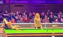 Bozhilova officiated her first Triple Crown event match during the 2016 UK Championship,[11] and made her debut at the main stages of the World Snooker Championship at the 2019 event.[3][12] She was again selected to referee at the 2020 World Championship.[13] She refereed her first Triple Crown final at the 2022 Masters,[14] and her second at the 2022 UK Championship.