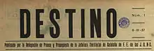 Destino magazine was founded in Burgos in May 1937 by Xavier de Salas Bosch and Josep Maria Fontana i Tarrats, a group of Catalans linked to the Spanish Falange.[1] It served as organ of expression for Catalan francoists intellectuals refugees in the area during the Spanish Civil War. The title of the weekly refers to the phrase of José Antonio Primo de Rivera: "Spain is a unit of destiny in the universal" ("España es una unidad de destino en lo universal");[2] until 1945 it carried the subtitle "Unity policy" ("política de unidad"), in reference to the Spanish national unity.[3]