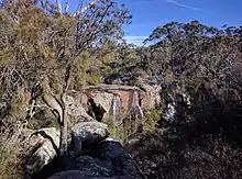 Coal mining exploration has occurred in the park, which has caused cracking in creek beds as well as some damage to slopes and rocks.[2] Stream flows have been altered due to cracking, which can lead to alterations in aquatic habitats and impacting on linked species.[24] Cracking caused to the streams can be to such an extent as producing water loss.[27] Management trails have previously been created using coal wash waste, which can be easily transported into the streams during rain events.[2] This can cause alkaline conditions and can have a negative effect on flora and fauna.