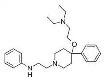- ↑ Hermans B, Verhoeven H, Janssen P (September 1970). "4-substituted piperidines. V. Local anesthetic 4-aminoalkoxy-4-arylpiperidines". Journal of Medicinal Chemistry. 13 (5): 835–8. doi:10.1021/jm00299a009. PMID 5458366.