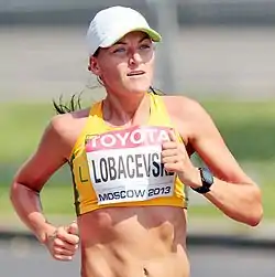 Lobačevskė started out as a track runner and in 1998 she represented her country in the 3000 metres at the 1998 World Junior Championships in Athletics.[3] The following year she placed sixth in the 5000 metres at the 1999 European Athletics Junior Championships held in Riga.[4] In her final international outing in the younger age categories, she finished 13th in the 10,000 metres at the 2001 European Athletics U23 Championships.