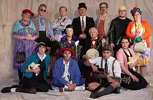 Die Grafsteensangers (the tombstone singers) is a comical entertainment group in South Africa. The 12 members of the group, with ages varying between 18 and 83, sing mostly old Afrikaans songs with straight faces and in old costumes.