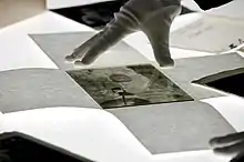 An archivist viewing one of the archive's glass negatives on a light table