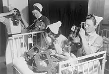 The scene where an innocent 50s nuclear family sit around the television all wearing sinister WWII gas-masks while the narrator explains how "normal family life" has continued despite the epidemic is one of the most chilling things I have ever seen on film.[23]