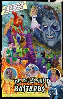 Die You Zombie Bastards! is a 2005 American superhero film directed by Caleb Emerson, written by Emerson and Haig Demarjian, and starring Tim Gerstmar, Geoff Mosher, and Pippi Zornoza. It is about a serial killer (Gerstmar) who must save his cannibal wife Violet (Zornoza) from zombies animated by Baron Nefarious (Mosher).