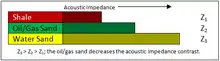 For a dim spot to occur, the shale has to have a lower acoustic impedance than both the water sand and the oil/gas sand, which is the opposite situation required for a bright spot to occur. This is possible because compaction causes the acoustic impedances of sands and shales to increase with age and depth but it does not happen uniformly – younger shales have a higher acoustic impedance than younger sands, but this reverses at depth, with older shales having a lower acoustic impedance than older sands.[2]