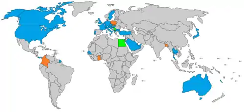 - ↑ Pacolli, Behgjet [@pacollibehgjet] (February 19, 2019). "#Kosovo is expanding its diplomatic footprint around 🌍. We will open the Embassy in #Thailand @RKSinThailand w/Ambassador @mbrajshori, in #Bangladesh w/Ambassador @gureya, in #Colombia & #Ghana soon. This will serve the strengthening of #Kosovo partnerships w/these countries" (Tweet). Archived from the original on 1 April 2021. Retrieved 14 February 2023 – via Twitter.