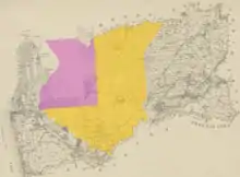 Map showing the boundaries of the council in 1853 with relation to the Hundred of Yatala (shaded in yellow) and the Hundred of Port Adelaide (shaded in purple)
