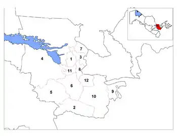 Since 2020, when the Yangihayot district was created,[5] Tashkent is divided into 12 districts.