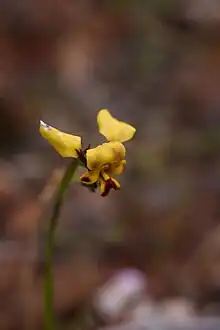 Diuris suffusa, commonly known as mottled donkey orchid,[2] is a species of orchid that is endemic to the south-west of Western Australia. It has two or three linear to lance-shaped leaves and up to seven cream-coloured to creamy-yellow flowers with light brown to reddish-brown markings.