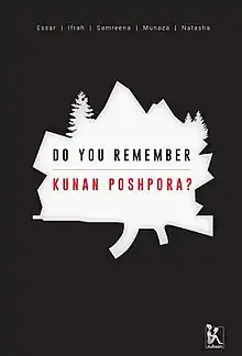Do You Remember Kunan Poshpora? is a 2016 non-fiction book authored by five Kashmiri women: Essar Batool, Ifrah Butt, Munaza Rashid, Natasha Rather and Samreena Mushtaq.[1] The book concerns the alleged 1991 mass rape by Indian security forces and is part of a series on "Sexual Violence and Impunity in South Asia" published by Zubaan Books and supported by the International Development Research Centre.[2][3][4] The book was officially released at the Jaipur Literature Festival.[5][6]