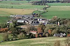 In 1734, the village was described in George Mark's Survey of a Portion of Northumberland[2] as "remarkable for its largeness, the badness of its houses and low situation, and perhaps for the greatest quantities of geese of any in its neighbourhood". At about the same time, the tune Dorrington, also known as Dorrington Lads, was written down in the William Dixon manuscript.[3] Having 14 strains, it is the most complex and elaborate of the pieces in that early source for Northumbrian music. The last tune played, on his deathbed, by the celebrated piper Will Allan, who died near Rothbury in 1779, was Dorrington Lads. A rhyme has survived, which fits the second strain of this tune: