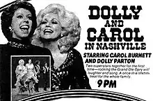 Dolly & Carol in Nashville is a television special starring Dolly Parton and Carol Burnett that was shot at The Grand Ole Opry and broadcast on CBS on Valentine's Day in 1979. It was part of a promotional campaign for Parton's recent album, Heartbreaker.[1]