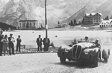 The Dolomites Gold Cup Race (translation: Coppa d' Oro delle Dolomiti) was a car race on public roads open to traffic, which was run in the Dolomite Mountains of northern Italy for ten years from 1947 to 1956. It took place along an anti-clockwise circuit that was 304 km (188 miles) long and usually took about 3 to 4 hours to complete the one lap that made up the race distance, with the start and finish in the town of Cortina d'Ampezzo. The circuit went through many Italian towns, and it had nearly 2,000 meters (2 km, 1.25 miles, or 6,600 feet) of elevation change- more than 6 1/2 times that of the Nürburgring and the Isle of Man TT track.