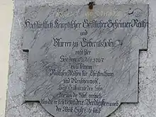On May 10, 1797, a French army marched into Gebrazhofen and plundered and destroyed the small town. Dominikus von Brentano did not recover from these upsets and died in Gebrazhofen in the night of July 2 to 3, 1797. In his parish church a memorial plaque on the outside wall of the sacristy reminds of him.