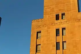 The Dominion Public Building is an Art Deco office building located on Richmond Street in the heart of London, Ontario, Canada. Construction on the building started in 1935 and concluded with the building's inauguration in September 1936.[1] The Dominion Public building was a result of the Public Works Construction Act of 1934 which laid out a plan to reinvigorate Canada's economy through public works projects.[2] The building was designed by Chief Public Works Architect Thomas W. Fuller with the help of three London architects: John MacLeod Watt, Victor Joseph Blackwell and Roy O. Moore.[3] The building displays a physical essay of "the New Classicalism or Modern Classicalism"; this architectural approach is a take on the Art Deco style of architecture and is what highlights this building as a piece of Canadian Heritage.[3]