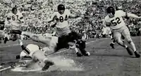 The 1950 Wolverines then advanced to the Rose Bowl where they beat the previously undefeated University of California Bears (9–0–1) by a score of 14–6. Michigan was held scoreless and trailed 6–0 after three quarters, but Dufek took over in the fourth quarter. Dufek ran for 113 yards in the game and scored two touchdowns in the final six minutes of the game.[4] Dufek was named MVP of the 1951 Rose Bowl game and was selected by the Chicago Bears in the 17th round of the 1951 NFL Draft.