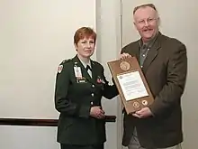 In 2002, Barbisch was promoted to major general.[7] Among her assignments at this rank were military assistant to the Assistant Secretary of the Army (Manpower and Reserve Affairs).[7] She retired in 2005, and her awards include the Defense Superior Service Medal, Meritorious Service Medal, Army Reserve Components Achievement Medal, National Defense Service Medal, Vietnam Service Medal, Armed Forces Reserve Medal, Army Service Ribbon, Army Reserve Components Overseas Training Ribbon, Republic of Vietnam Gallantry Cross with Palm, Republic of Vietnam Civil Actions Unit Citation, Vietnam Campaign Medal, and Expert Field Medical Badge.[6]