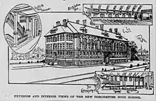 Dorchester High School was founded in 1852 in what was then the independent town of Dorchester, Massachusetts. In 1870, Dorchester was annexed by the City of Boston and Dorchester High came under the jurisdiction of Boston Public Schools.[1] When a new school building on Peacevale Road opened in 1925, the student body was split. Dorchester High for Boys moved to the new facility, while Dorchester High School for Girls remained in the Codman Square building.[2] In a Boston School Committee vote in 1953, the school again became co-educational when the Dorchester High School for Girls was closed.[3] The school existed until 2003, when it was closed by the Boston School Committee to create the Dorchester Education Complex.[4]