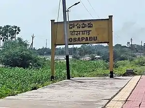 Dosapadu Halt railway station is a railway station located near the Dosapadu stream. It serves the villages of Pamulapadu and Dosapadu.[1][2] It lies on the Vijayawada–Nidadavolu loop line and is administered under Vijayawada railway division of South Coast Railway Zone