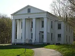 It was built in 1838, and is a 2+1⁄2-story, three bay by three bay, Greek Revival style frame dwelling with a side hall plan. It has a temple front with a monumental two-story portico and picturesque two-story bay window added in the 1850s.[2]: 3