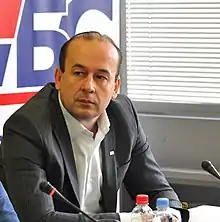 In January 2017, Velimir Ilić withdrew his support from Serbia's SNS-led administration. Jovanović, speaking as a party vice-president, stated that Ilić was entitled to his personal opinions but that the party as a whole would continue to support the administration.[32] Ilić then expelled Jovanović from the party, arguing that he had disobeyed the decisions of the party leadership, had made false claims about a diploma, and was compromised because of his involvement in a 2012 car accident. Jovanović rejected these claims and said that Ilić was really concerned about a possible leadership challenge.[33][34][35]