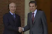 Jettou started his political career in 1993 when King Hassan II appointed him to be Minister of Trade and Industry.[1] He was Minister of Economy and Finance from August 1997 to March 1998.[2] Then he served as Minister of Interior from 2001 in the cabinet of Abderrahmane Youssoufi until he was appointed as Prime Minister by King Mohammed VI on 6 October 2002.[1] His appointment was controversial as he was not then a member of any party, although he governed with a coalition that held a parliamentary majority. The Socialist Union of Forces for Progress and Istiqlal Party were the major parties of this coalition. In late 2004, he successfully led Morocco into a historic free trade agreement with the United States.