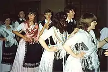 The Heimatortsgemeinschaft (Home Town Community) upholds the German traditions of Dudeștii Noi. The goals of the association are to foster relations between original residents and fellow countrymen living abroad, as well as to preserve traditional customs. The community meets regularly since 1957, and biannually since 1981 in the area of Augsburg, Germany. Holy masses are said and church services are held during those gatherings, followed by traditional Kirchweih dance presentations and parades in traditional costumes, to the tunes of traditional oompah-style brass bands.