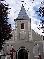 The first rectory was founded in 1334. The church was built in 1750–1751 and is one of the oldest Swabian churches in Banat.[13] Patron saint of the church is Saint Wendelin. In 1761, the Archdiocese of Neubeschenowa was founded, and Father Titzer was appointed archpriest. The new archdiocese consisted of 28 parishes, with about 13,000 parishioners.[14] Since 1754, it has observed the religious holidays of Saint Wendelin of Trier, Saint Roch of Montpellier, Saint John of Nepomuk, Saint Quirinus of Tegernsee and the Sacred Heart of Jesus. The first organ was bought in 1764 for 150 guilders. The church bell was cast in Graz, and in 1767, the church was equipped with the clock in its tower.[14] In 1774, as the number of parishioners increased significantly, the extension and renovation of the church was approved, and a new tower was built. A chapel dedicated to Saint Roch was built in the middle of the new cemetery in 1844; the first cemetery in Dudeștii Noi was consecrated in 1751.