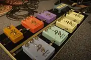 Currently, Duesenberg offers a small range of high quality effect pedals. The range includes the White Drive II (Overdrive), the Blue Move (Chorus), the Red Echo II (Delay), the Green Comp II (Compressor), the Violet Trem (Tremolo) and the Gold Boost. All effects are hand wired in Germany, fully analogue and feature a True-Bypass circuit.[11]