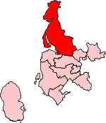 Dumbarton shown within the West Scotland electoral region and the region shown within Scotland