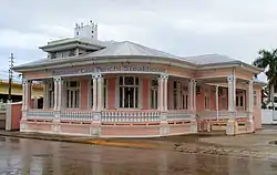 Duran Esmoris Residencia is a building in Mayagüez, Puerto Rico, situated on less than an acre of land on Mendez Vigo Street. Its foundation is concrete, its roof metal and zinc. Designed by architect, Luis Fernando Nieva, the building is generally rectangular in shape. Built in 1921, the people who lived in the residence were prominent members of the municipality of Mayagüez. Columns with ornate carvings separate the main rooms. The ground level is 3 feet off the ground, the veranda circles around the building. The Duran Esmoris residence features tall ceilings, mosaic and stained class making it one of the last remaining structures with good representation of what the character of Mendez Vigo Street was in the early 20th century. [3]