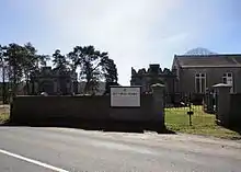 The last use of the original Seafield Mausoleum was on 12 October 1911 for the funeral of Lady Caroline Stuart, Countess Dowager of Seafield, then the proprietor of the Seafield Estates. She was the widow of John Charles, 7th Earl and mother and heir of Ian Charles, 8th Earl.[10] Having earlier had the second Mausoleum built, by her will Lady Seafield closed the first. A plaque bolted across its door reads: "In terms of the Testamentary Writings of Caroline Stuart, Countess Dowager of Seafield, this Mausoleum has been closed and is not to be used for further interments. February 1913."[11] A tribute volume to Lady Seafield, published 1911, contained an account of proceedings at the Mausoleum at the end of her funeral.[12]