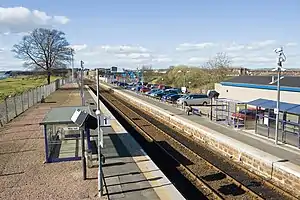 Service frequencies were improved here from 2018 as part of a timetable recast funded by Transport Scotland. An "Aberdeen Crossrail" commuter service was introduced between Montrose and Inverurie, which will call here and the other intermediate stations en-route once per hour in each direction.[10] The Aberdeen to Inverurie frequency was upped to every 30 minutes, with several of the existing Inverness trains combined with Aberdeen to Glasgow & Edinburgh express services to maintain through journey opportunities. A £170 million project to upgrade the Aberdeen to Inverness line also saw the track through here redoubled by 2019.[11]