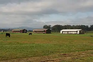 95.8 kilometres from Spencer Street, the Dysart Defence Sidings opened on 15 July 1941 to serve Puckapunyal and other army camps in the area. Located on the eastern side of the line, three sheds were located along a goods platform.[3] A signal box was provided in 1942 to control the junction of the main line and the siding, but after the war saw little use. However they remained in operation until May 1987, when the sidings were closed and later removed.